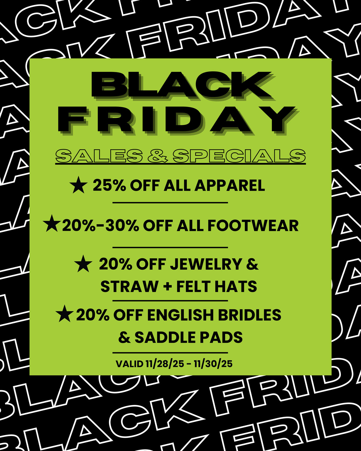 Carrying Top Brands in Tack, Western & English Apparel + Accessories, & Footwear.